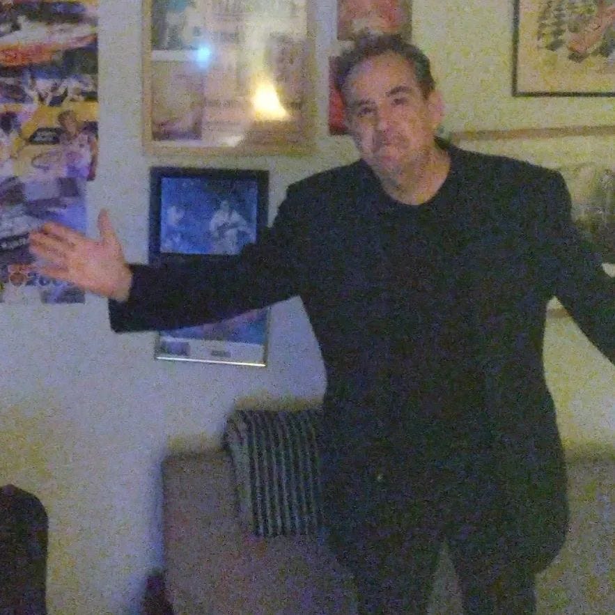 photos left to right are GIF of the last original Who concert, me today, John Entwistle, and me in High School.